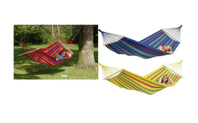 Hängematte aus wetterfestem und UV-beständigem EllTex-Material, extra haltbar und doch kuschelig weich wie Baumwolle.